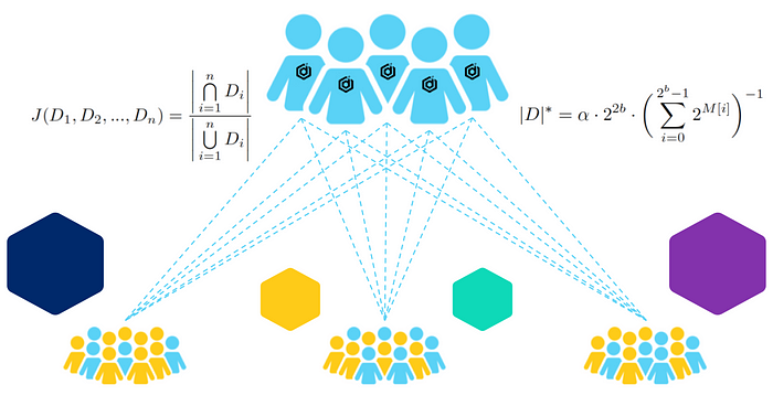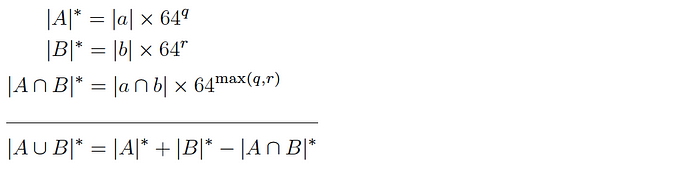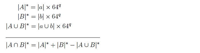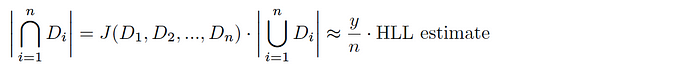 And thus, combining with HLL, we get an estimate of the cardinality of the intersection of the sets as follows: