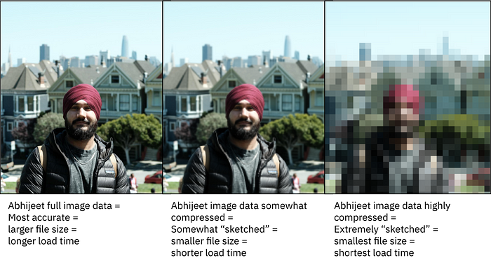 A sketch data structure is exactly what it sounds like: a summary or “sketch” of the full data that is a compact representation of it. As with other forms of compression (image, audio, or video compression), creating a representative sketch of a dataset involves trading off fidelity for efficiency: