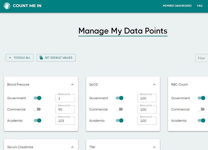 Count Me In aims to put the power of health data back in the hands of the people. The app allows people to choose what data they have access to, who can use that data, and how much they should be reimbursed for having that data. Count Me In is positioned in contrast to the current state of healthcare, where data can be a form currency in the healthcare market.