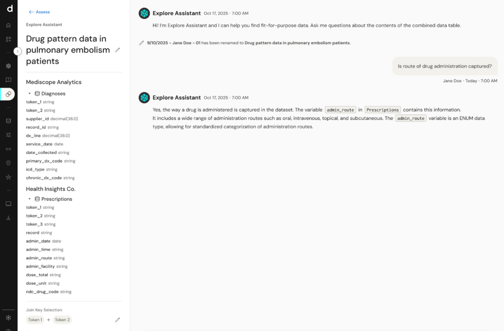 Now, Datavant and AWS are building on this foundation with Explore Assistant, an AI-powered capability that brings intelligence, speed, and accessibility directly to the data discovery experience, while preserving privacy and governance.