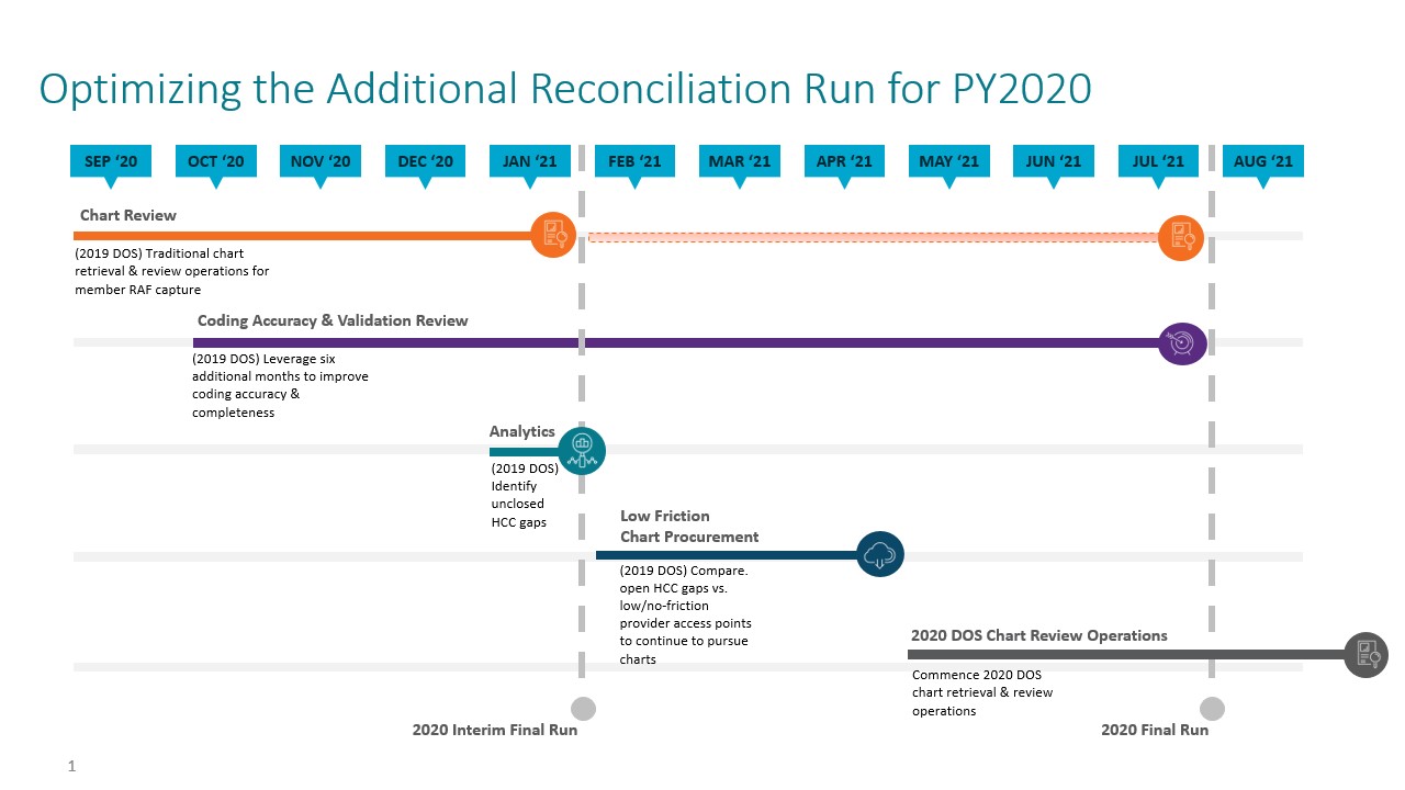 - October 2020 through July 2021 — Leverage the additional six-months before the Final Run submission to improve your coding accuracy and completeness through 2nd level chart reviews.