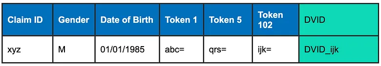 There are several other steps in our machine learning process we won’t go into here. Once we have determined a match, we assign a Datavant ID (DVID) to deidentified patient records. DVIDs are consistent across datasets within a use case-specific, and exist as an appended column within each dataset: