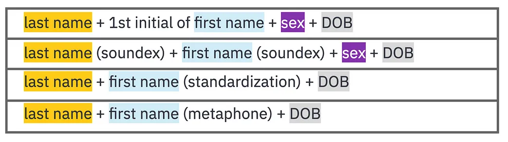 We use several other mitigation and standardization processes to address “bad data” issues in token generation. These include phonetic algorithms like Soundex and Metaphone. Soundex was developed in the early 1900’s to better analyze census data. It’s a “sounds-like” algorithm that helps standardize name spelling variations (e.g. “Steven” and “Stephen”). Metaphone is an algorithm designed in 1990 that was intended to be an improvement on Soundex. It takes into consideration the many variations and inconsistencies in English spelling and pronunciation. These and several other standardization and mitigation strategies help “improve” the quality of the data we have available to us.